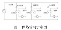 城市供熱管網(wǎng)系統(tǒng)是由多個(gè)串并聯(lián)管段組成的管路系統(tǒng),是城市集中供熱系統(tǒng)的重要組成部分。為滿足各熱用戶個(gè)性化供暖需求,實(shí)現(xiàn)系統(tǒng)的節(jié)能降耗,分戶計(jì)量控制供暖系統(tǒng)形式正在逐步推廣。由于采暖用戶的自主調(diào)節(jié),連接系統(tǒng)一、二級(jí)管網(wǎng)的換熱站應(yīng)隨著用戶末端進(jìn)行調(diào)節(jié)。首先是在二級(jí)管網(wǎng)側(cè)通過(guò)循環(huán)水泵的變頻,來(lái)保證二級(jí)管網(wǎng)某處的供、回水壓差不變,目的是穩(wěn)定因末端用戶用熱的改變而對(duì)管網(wǎng)水力工況的影響,然后,改變一級(jí)管網(wǎng)側(cè)的供熱參數(shù)來(lái)確保二級(jí)管網(wǎng)側(cè)的供水溫度、及供回水溫差的穩(wěn)定。在這一過(guò)程中,一級(jí)管網(wǎng)側(cè)實(shí)際上是按照二級(jí)管網(wǎng)側(cè)所需的供熱量在進(jìn)行被動(dòng)調(diào)節(jié)。然而,管網(wǎng)系統(tǒng)中各管路水力工況相互影響,系統(tǒng)中任何一個(gè)調(diào)節(jié)裝置的工作參數(shù)發(fā)生改變,必然會(huì)引起各熱用戶(換熱站)之間流量的重新分配。當(dāng)各換熱站一級(jí)管網(wǎng)側(cè)均因二級(jí)管網(wǎng)側(cè)負(fù)荷的改變而各自進(jìn)行被動(dòng)調(diào)節(jié)時(shí),由于各換熱站管路間水力工況相互影響,就必然會(huì)導(dǎo)致系統(tǒng)水力、熱力失調(diào),影響供熱效果。因此,為了提高供熱管網(wǎng)整體的運(yùn)行調(diào)節(jié)與控制水平,減小水力、熱力失調(diào),保證供熱穩(wěn)定性,必須將換熱站一級(jí)管網(wǎng)各自的被動(dòng)調(diào)節(jié)進(jìn)行統(tǒng)一管理和控制。