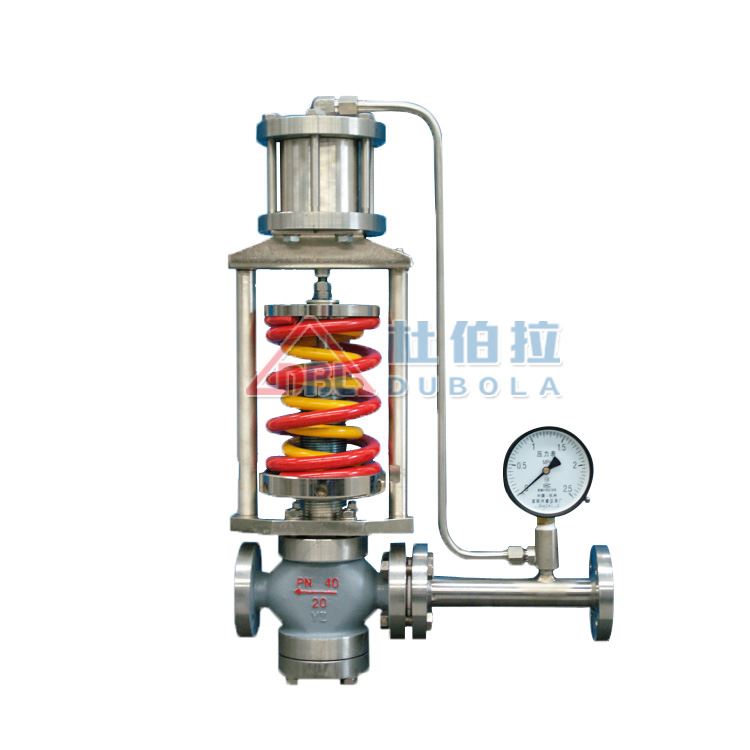 自力式減壓閥 自力式壓力調(diào)節(jié)閥/ 指揮器操作型自力式壓力調(diào)節(jié)閥采用動力源與信號點分開檢測的方法,外加可調(diào)節(jié)流裝置,使整臺閥門的調(diào)節(jié)精度大大提高,減壓比最大可達(dá)2000:1。廣泛應(yīng)用于各種氣體減壓穩(wěn)壓的自動控制場合,特別適合作為氮封的供氮閥使用,具有持續(xù)供氮壓力波動小、反應(yīng)靈敏等特點。